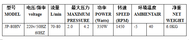 5.本產品為臺冠JP-80HV壓縮泵,嚴禁加油潤滑。