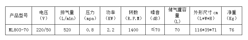 8.本產品為臺冠ML803-70無油空氣壓縮機,嚴禁加油潤滑。